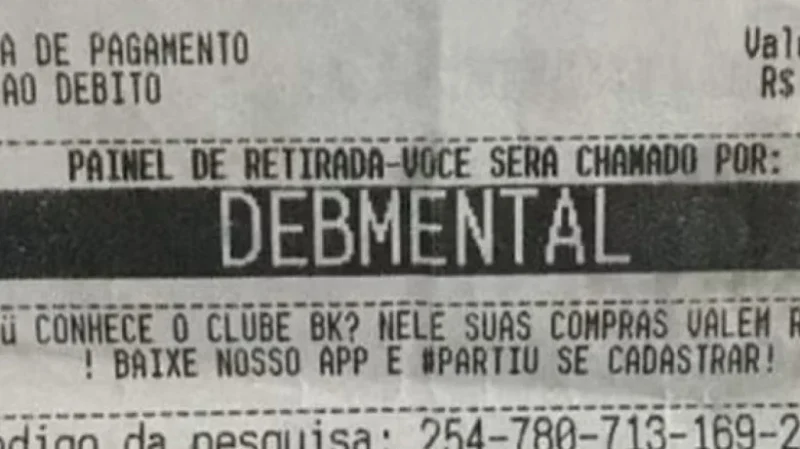 O incidente ocorreu no último sábado, 26 de outubro, na unidade do Burger King da Avenida Jacu-Pêssego, em Itaquera, na Zona Leste de São Paulo. Após realizar o pedido no drive-thru, o cliente, que não foi identificado, confereu a ficha do seu pedido e se surpreendeu ao ver a palavra “debmental” como identificação.
