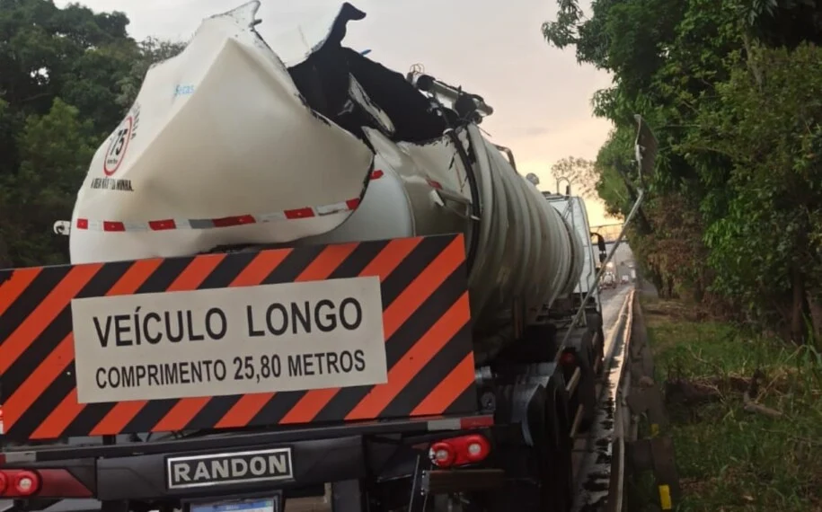 Vazamento de 18 mil litros de óleo deixa trânsito lento na BR-153