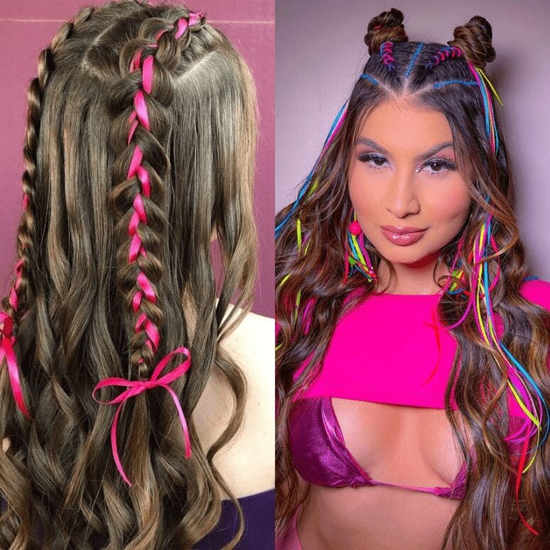 1. Tranças Boxeadoras com Fitas Coloridas