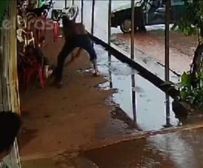 Uma câmera de segurança de um comércio no Distrito de Goialândia, em Anápolis, registrou um homem sendo brutalmente agredido a pauladas na tarde desta terça-feira (12). O ataque ocorreu em frente ao estabelecimento e moradores da região só ficaram observando as agressões.